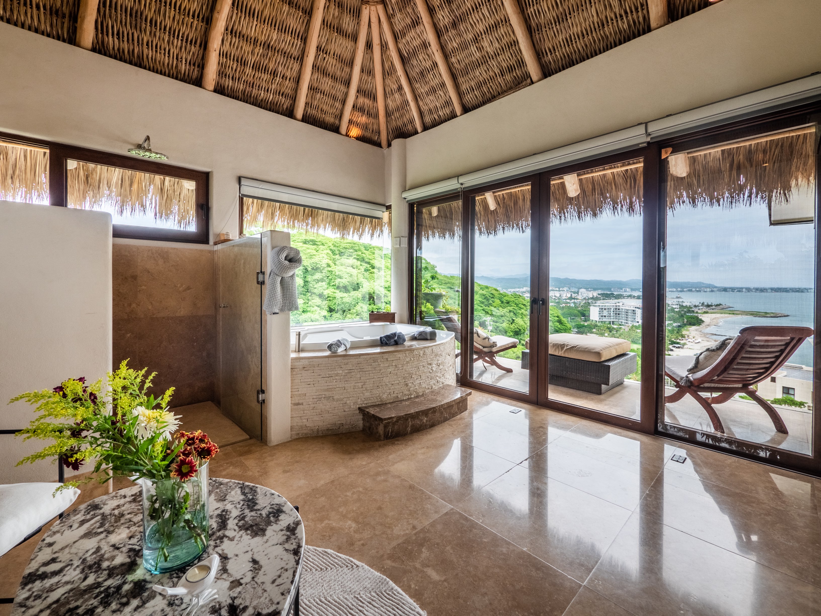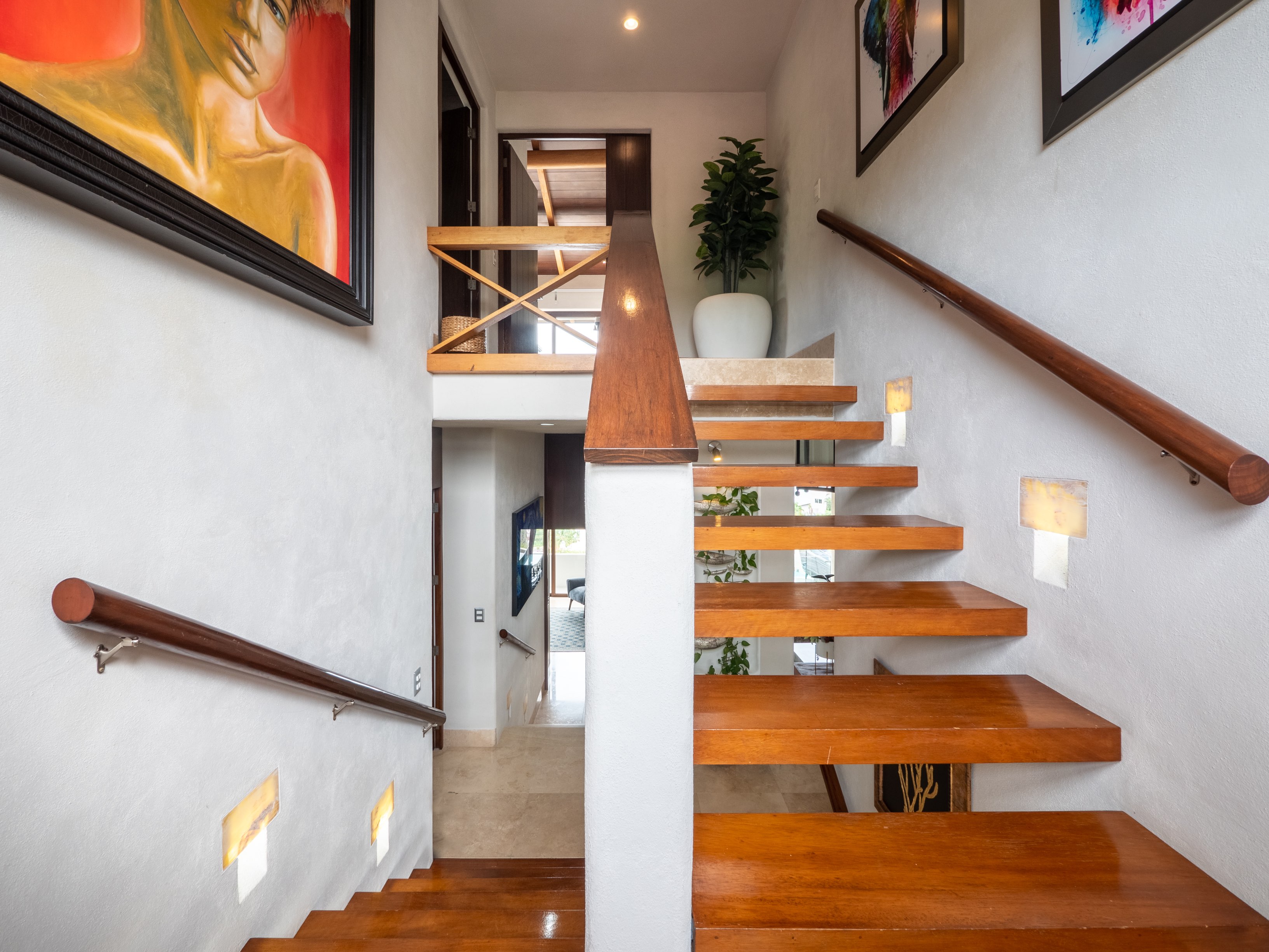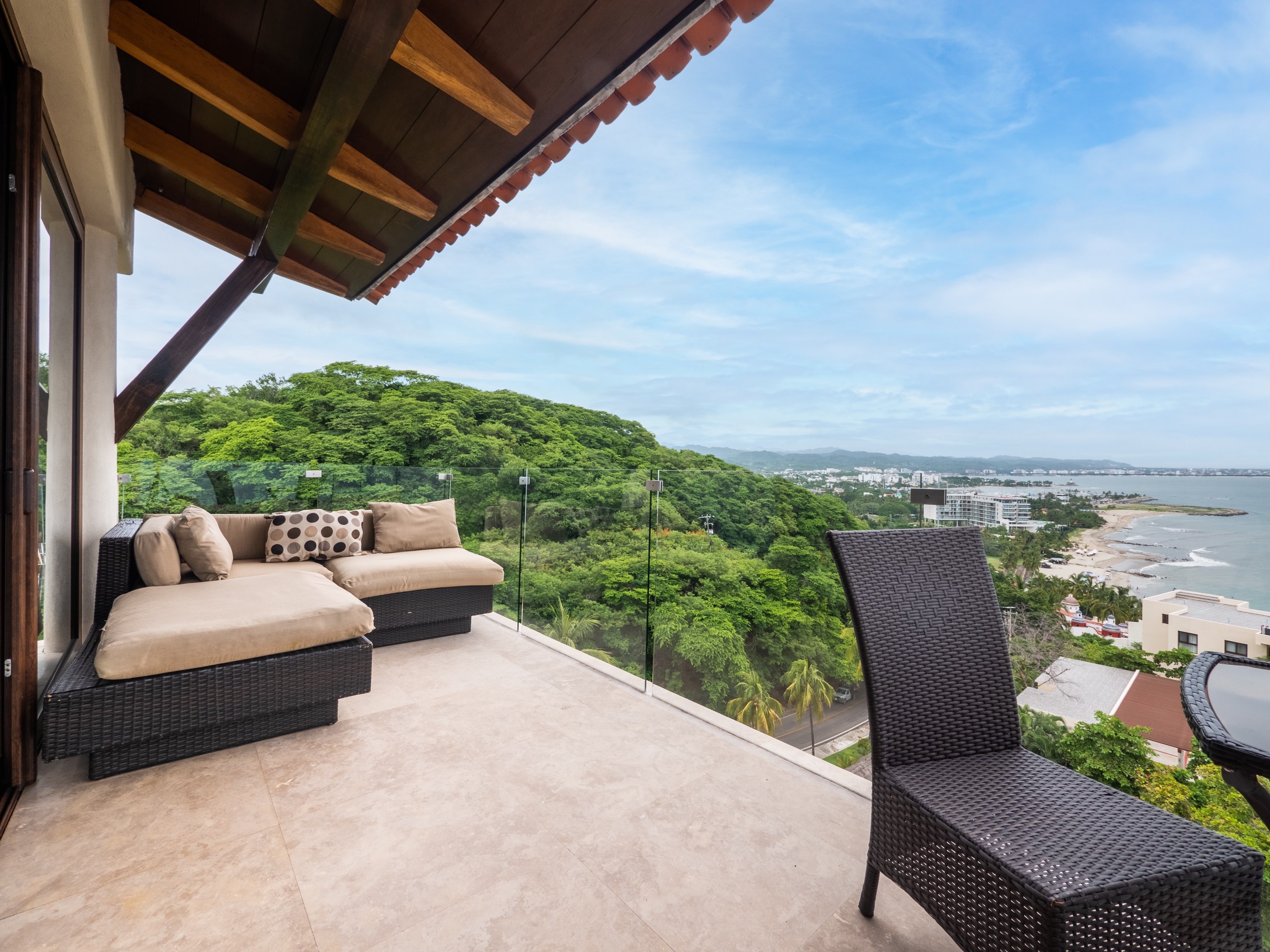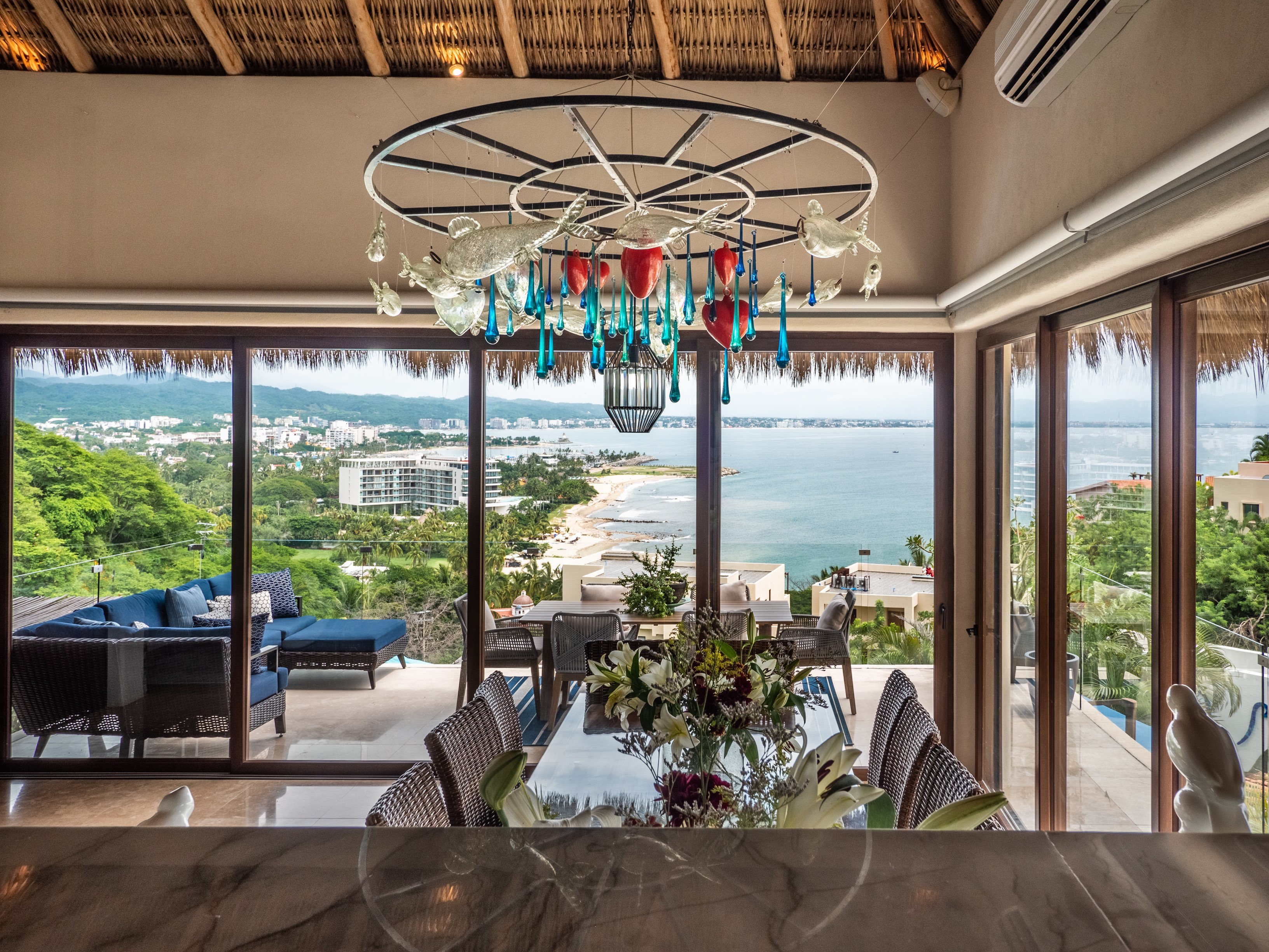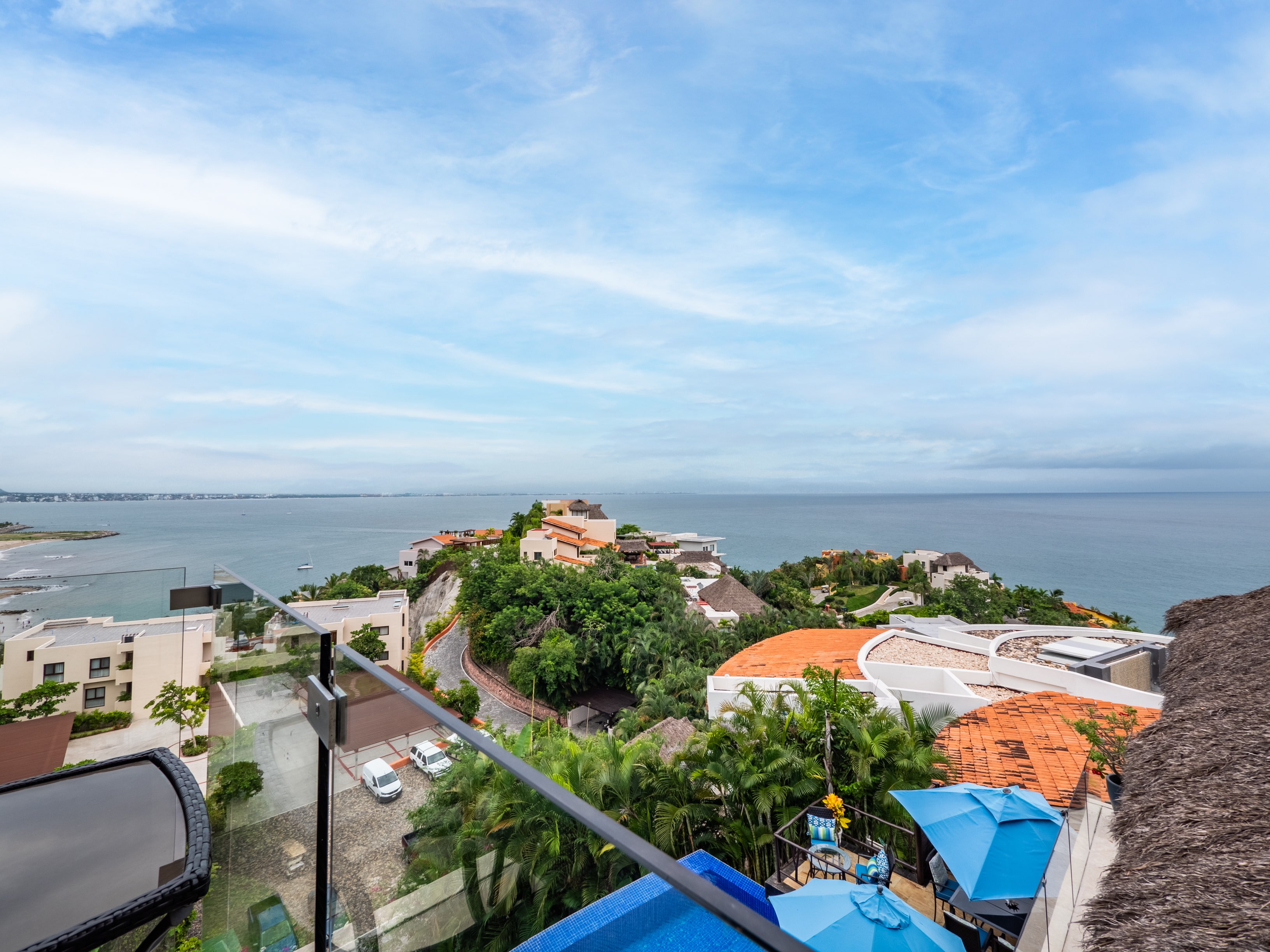 This luxury villa in Real del Mar has a Mexican-Pacific style and stunning ocean views. This three-level home features spacious living and dining areas, a garden, and a private pool. Conveniently located near La Cruz, Bucerias, and the Marina, with easy access to restaurants, shops, and local activites.