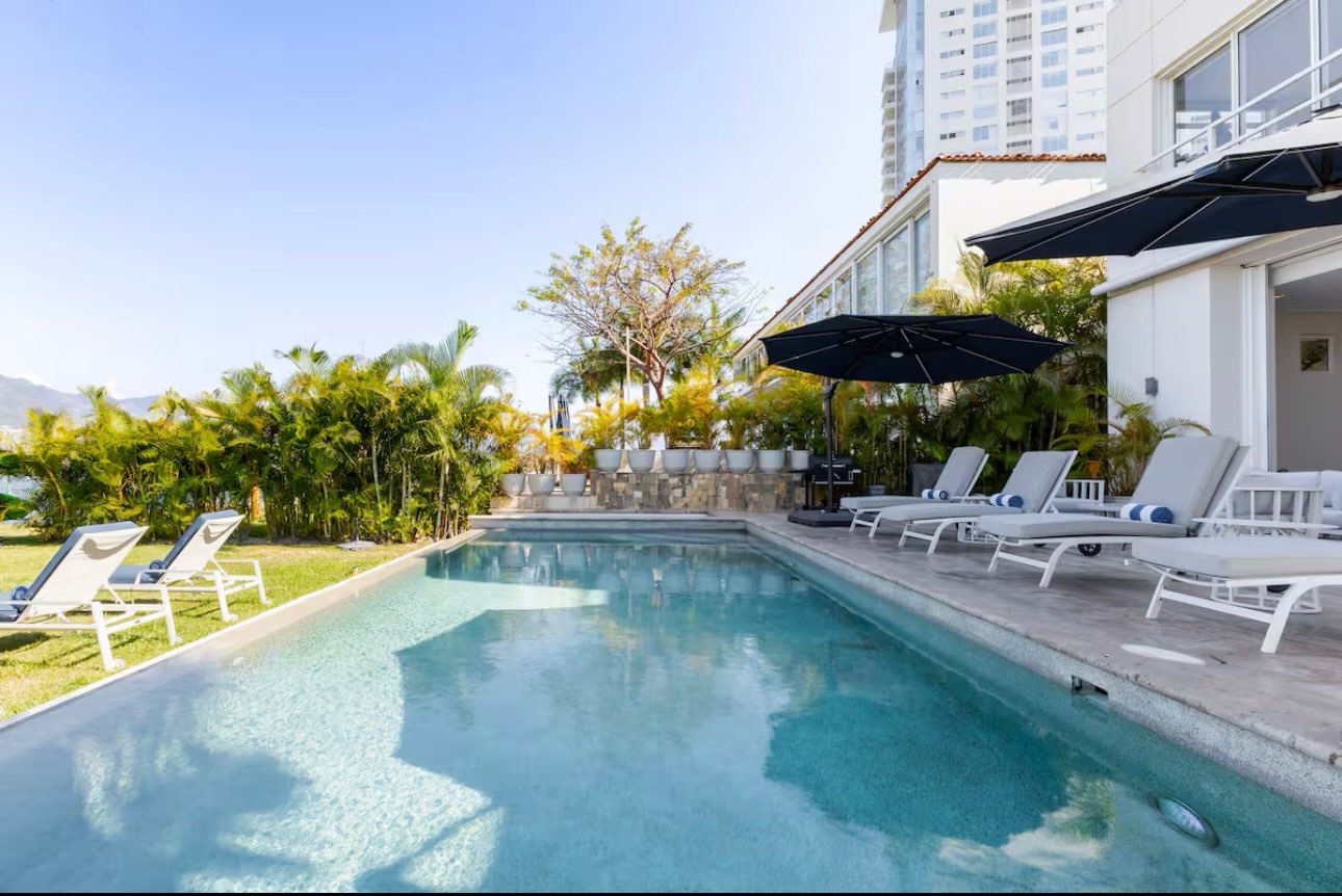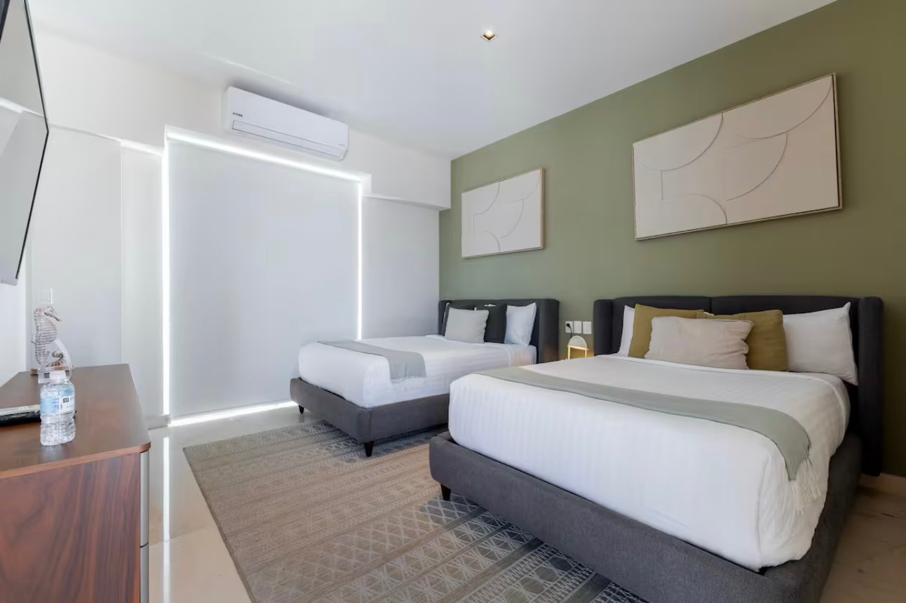 Beautiful and spacious oceanfront villa in the exclusive Tres Mares development. Expansive terraces and balconies offer spectacular views of the bay, yachts and cruises. Enjoy access to a private beach, infinity pool, spa, gym, tennis courts, and a poolside restaurant.