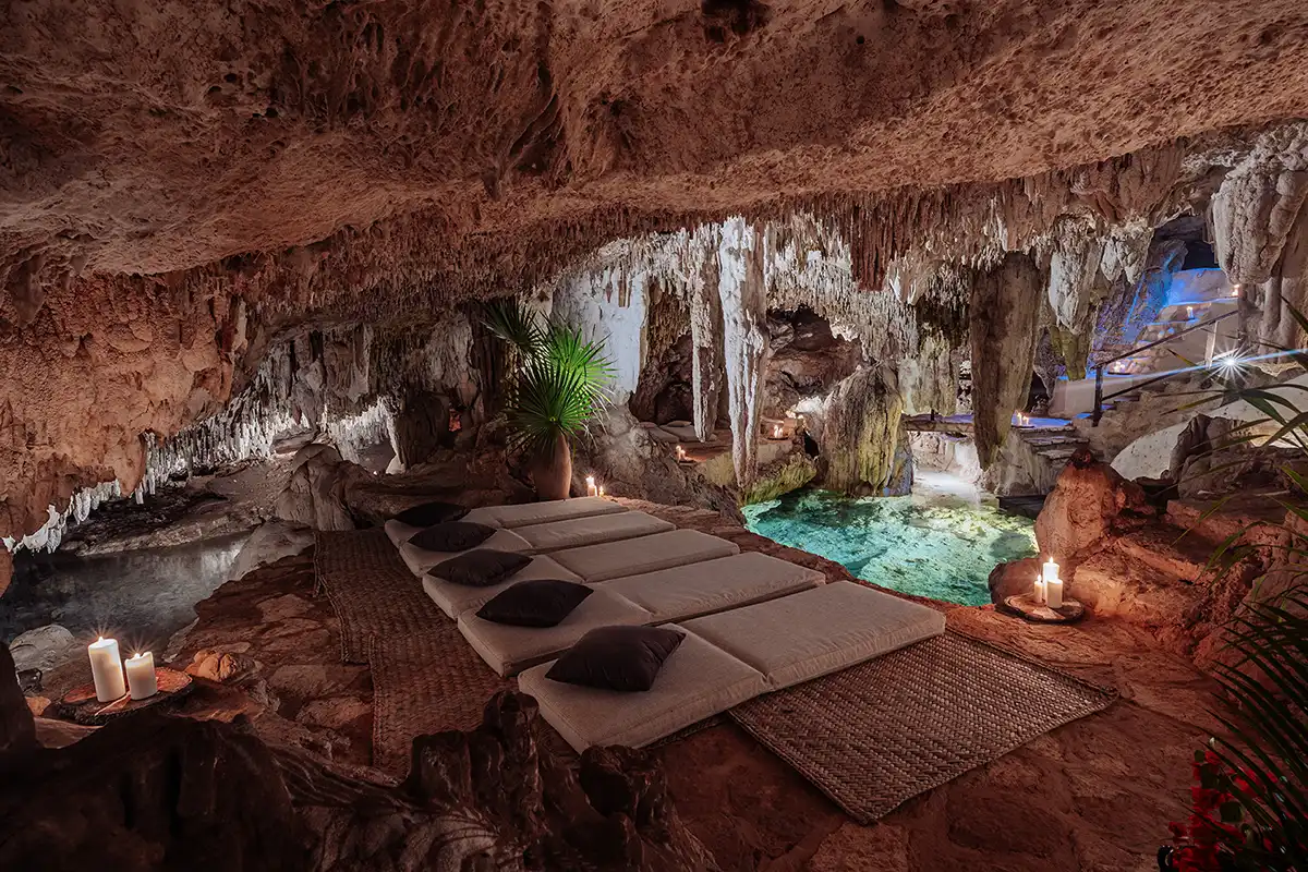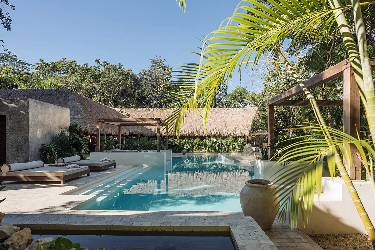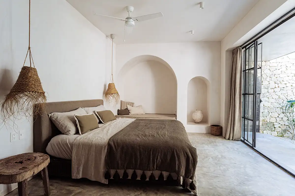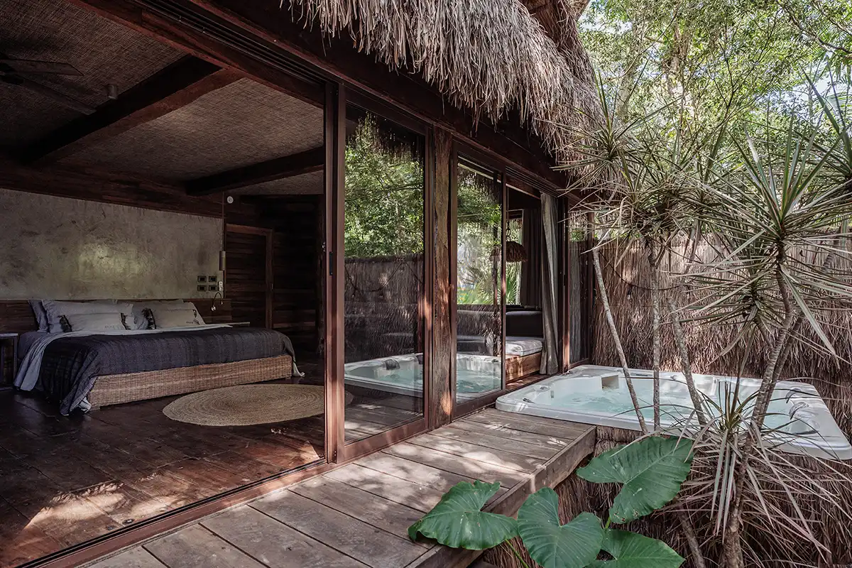 The Corazón Beach Bungalows are a bohemian beachfront estate on Soliman Bay, made up of three private two-bedroom bungalows. Nestled between palm trees and the calm turquoise waters of the bay, it’s the perfect setting for laid-back luxury, combining barefoot simplicity with effortless comfort. With six bedrooms across three bungalows, the estate comfortably hosts up to 14 guests. A shared beachfront pool, shaded hammocks, kayaks, and daily housekeeping make group stays seamless, while each bungalow features its own terrace for privacy. The bungalows can be rented individually for smaller groups or together as a full estate buyout for larger gatherings.