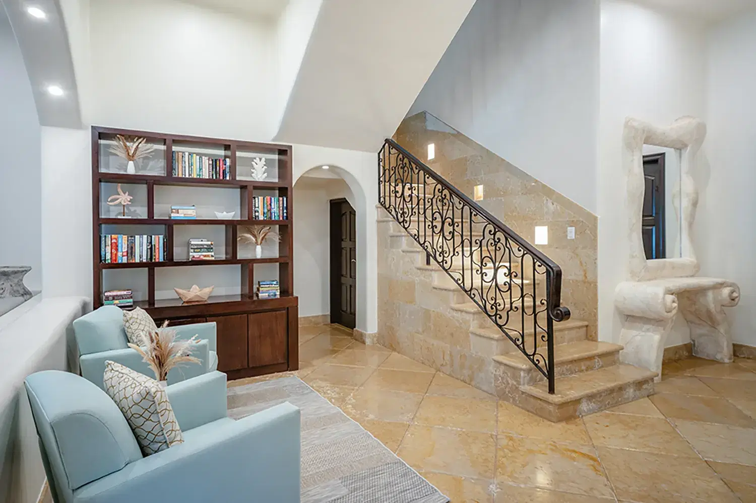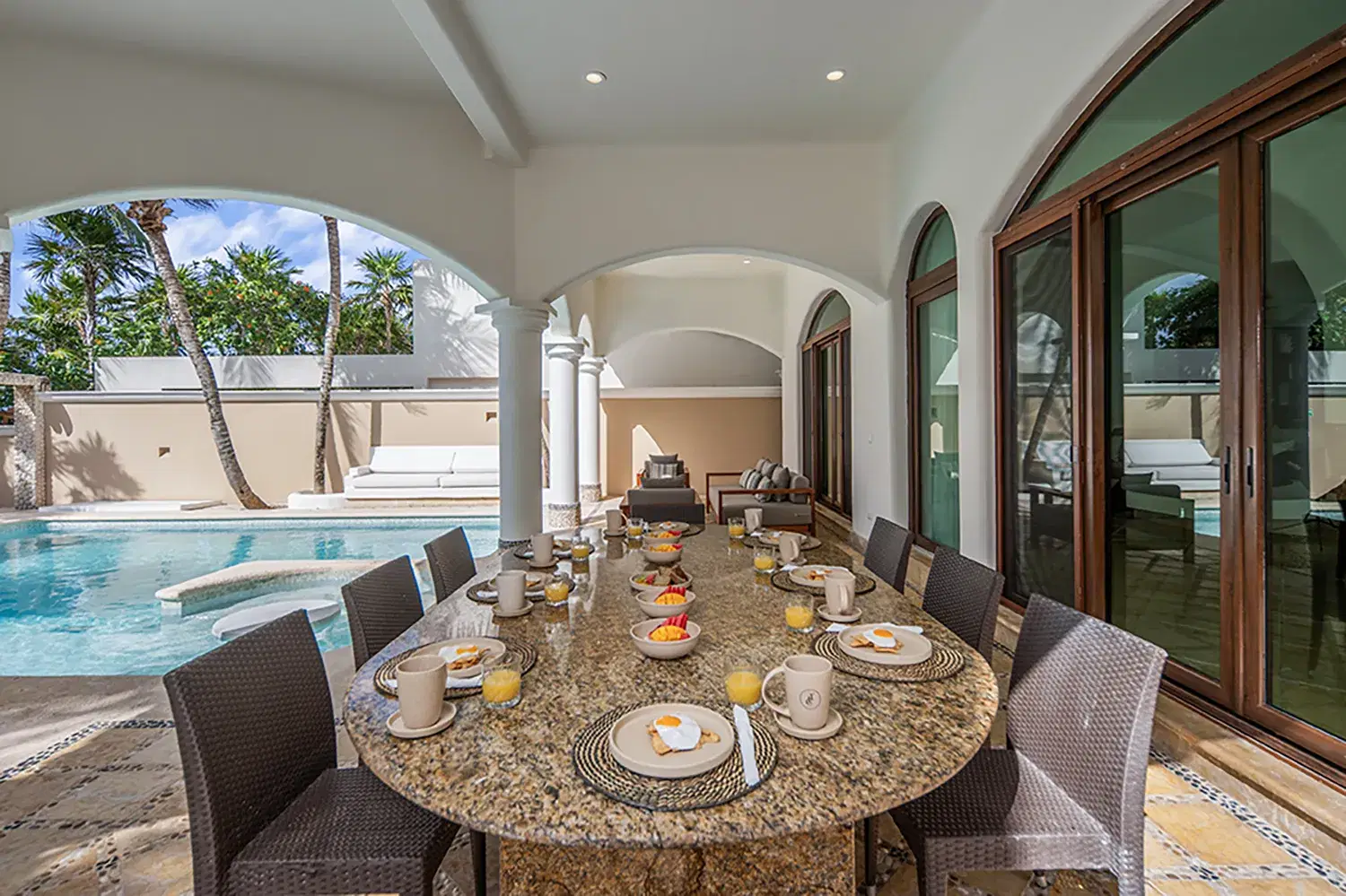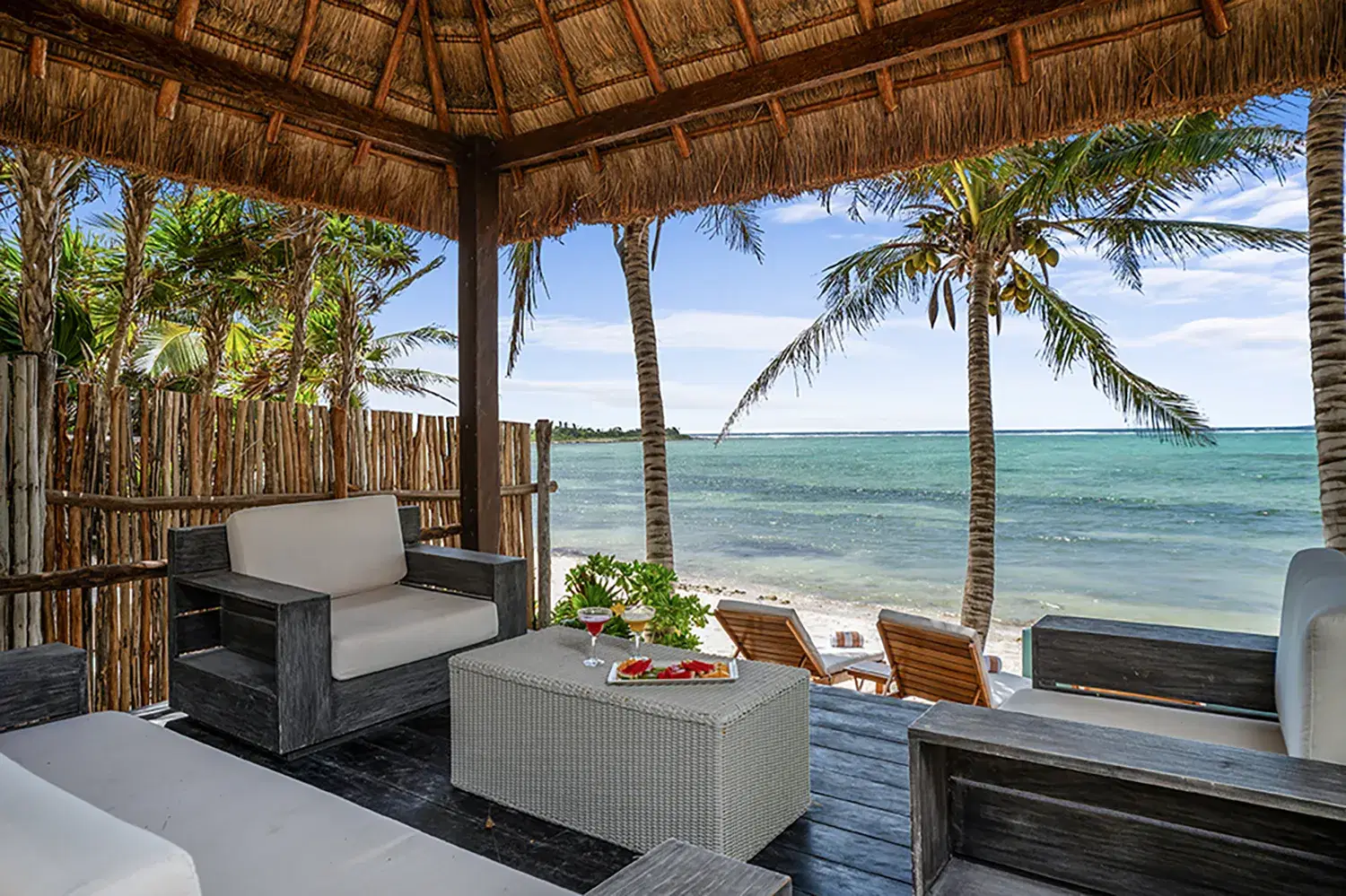 Sueño del Mar stands apart with its elegant arches, soaring columns, and Mediterranean-inspired design. Blending airy interiors with shaded outdoor spaces, the villa is made for relaxed living around the pool and breezy terraces overlooking Soliman Bay’s shallow waters. With six bedrooms, the home hosts up to 12 guests in comfort. Daily chef service, a rooftop lounge with panoramic views, and a private stretch of Tulum’s finest beach elevate the experience. Built for families and groups, Sueño del Mar combines architectural character with the effortless ease of a fully serviced villa.