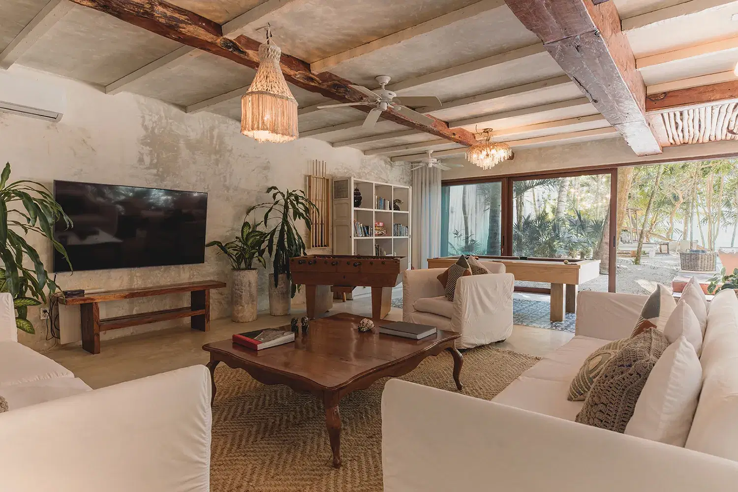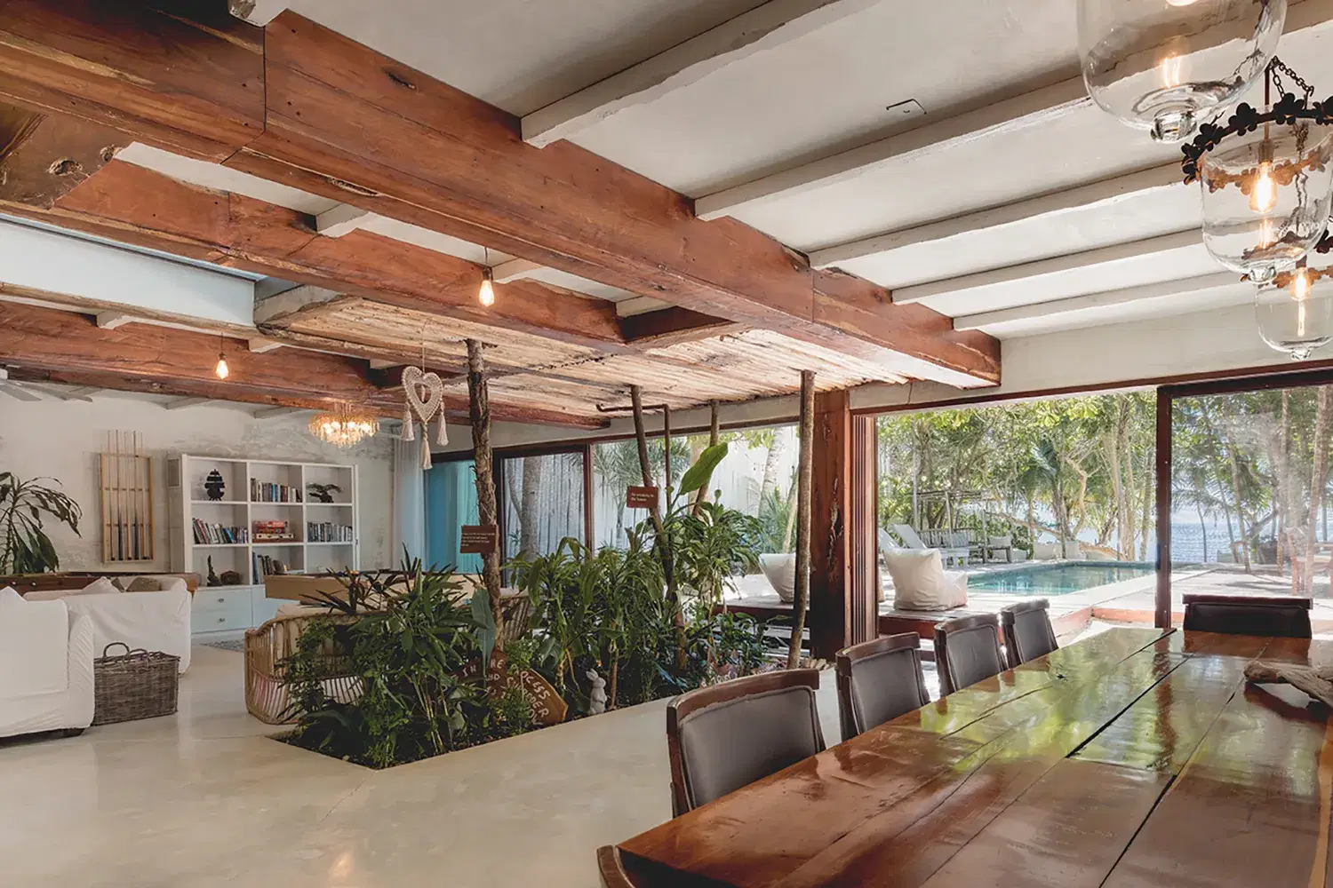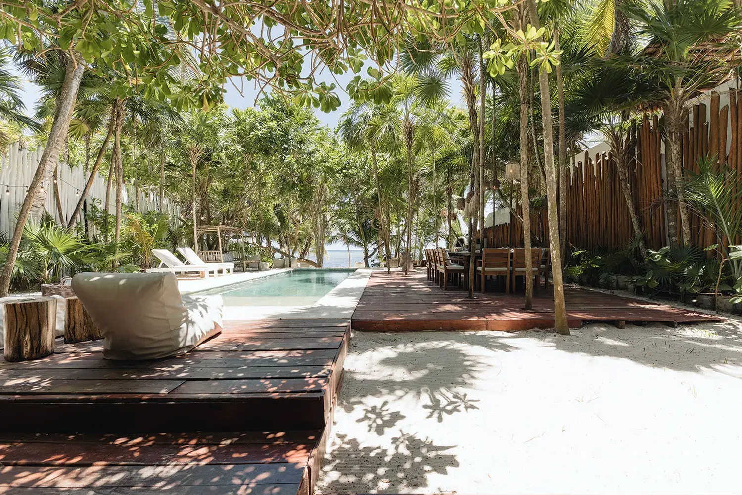 Nestled between the turquoise Caribbean and the mangrove jungle, Villa La Semilla is a five-suite sanctuary where organic design meet barefoot luxury. Whitewashed wood floors, rustic beams, and vintage touches like crystal chandeliers and peacock chairs create a home that feels both soulful and refined. Each suite opens to its own terrace with hammocks, inviting you to slow down and reconnect with nature. The villa's rooftop pool looks accross sea and jungle, while open air living spaces flow easily between indoors and out. With daily chef service, secluded beachfront access, and a design ethos rooted in simplicity Villa La Semilla is an intimate retreat for families and groups seeking peace, beauty, and effortless comfort in Tulum.