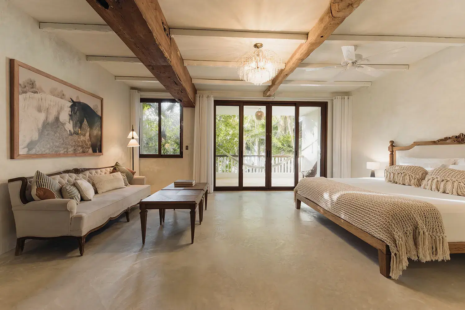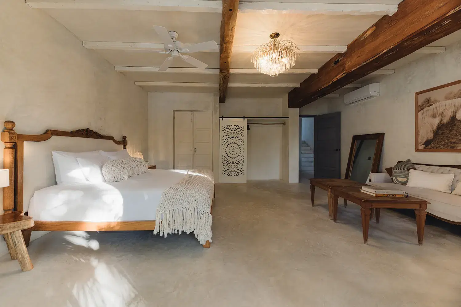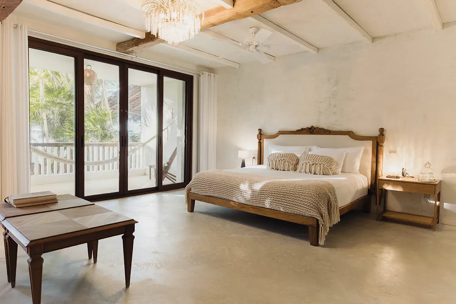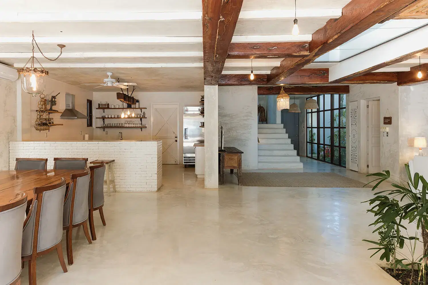 Nestled between the turquoise Caribbean and the mangrove jungle, Villa La Semilla is a five-suite sanctuary where organic design meet barefoot luxury. Whitewashed wood floors, rustic beams, and vintage touches like crystal chandeliers and peacock chairs create a home that feels both soulful and refined. Each suite opens to its own terrace with hammocks, inviting you to slow down and reconnect with nature. The villa's rooftop pool looks accross sea and jungle, while open air living spaces flow easily between indoors and out. With daily chef service, secluded beachfront access, and a design ethos rooted in simplicity Villa La Semilla is an intimate retreat for families and groups seeking peace, beauty, and effortless comfort in Tulum.